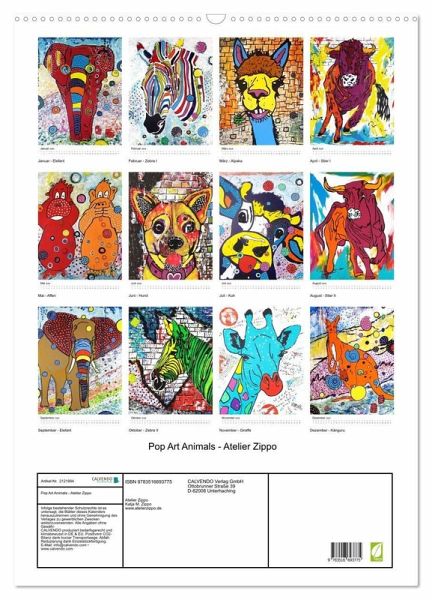 QUALITÄT - Hochwertiger Fotokalender mit 12 wunderschönen Motiven auf lichtbeständigem Bilderdruckpapier, robuste Spiralbindung mit Aufhängebügel.NACHHALTIG - deutliche Abfallreduzierung durch bedarfsgerechte Einzelstückfertigung, umweltfreundliches FSC-zertifiziertes Papier, Produktion in Deutschland, klimabewusste Logistik.PERFEKTES GESCHENK - Kalender für Freunde und Familie, für Kinder und Erwachsene, jung und alt, zu Weihnachten, Geburtstag oder zwischendurch.VIELFALT - Bildkalender in verschiedenen Formaten, z.B. DIN A5, DIN A4, DIN A3 sowie DIN A2. Ob Naturmotiv, Gemälde oder Fotos, ideal für ein persönliches Wohlfühlambiente.Farbenfrohe Tierporträts im Pop Art Stil von Autor(in): Katja M. Zippo