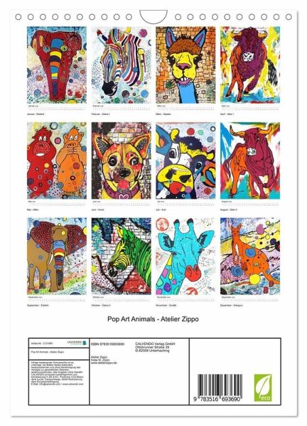 QUALITÄT - Hochwertiger Fotokalender mit 12 wunderschönen Motiven auf lichtbeständigem Bilderdruckpapier, robuste Spiralbindung mit Aufhängebügel.NACHHALTIG - deutliche Abfallreduzierung durch bedarfsgerechte Einzelstückfertigung, umweltfreundliches FSC-zertifiziertes Papier, Produktion in Deutschland, klimabewusste Logistik.PERFEKTES GESCHENK - Kalender für Freunde und Familie, für Kinder und Erwachsene, jung und alt, zu Weihnachten, Geburtstag oder zwischendurch.VIELFALT - Bildkalender in verschiedenen Formaten, z.B. DIN A5, DIN A4, DIN A3 sowie DIN A2. Ob Naturmotiv, Gemälde oder Fotos, ideal für ein persönliches Wohlfühlambiente.Farbenfrohe Tierporträts im Pop Art Stil von Autor(in): Katja M. Zippo