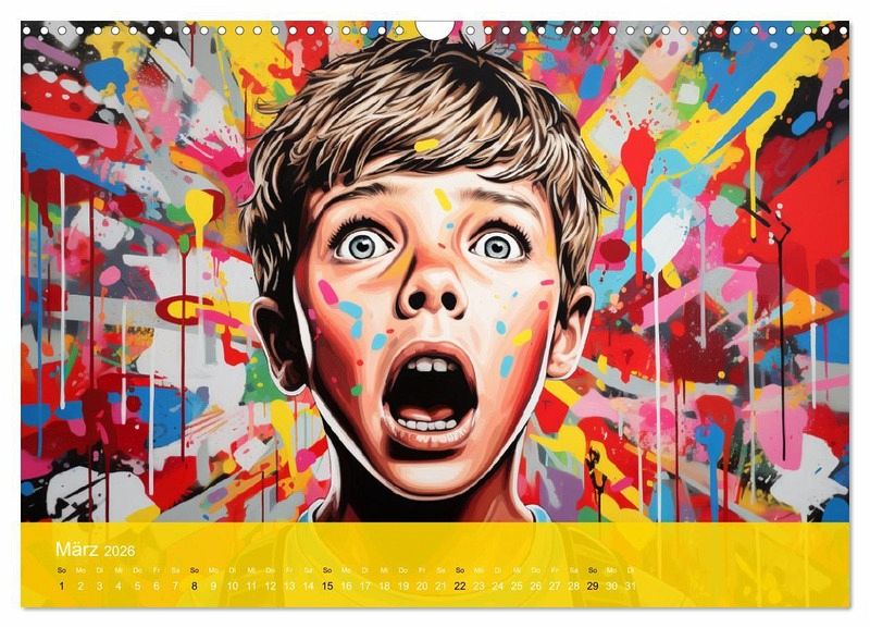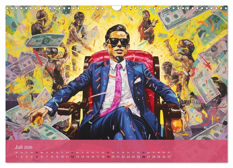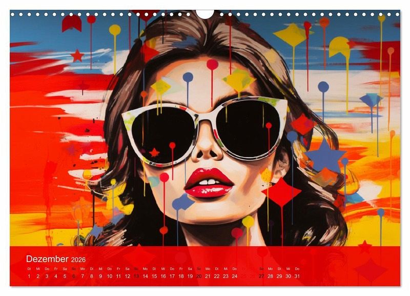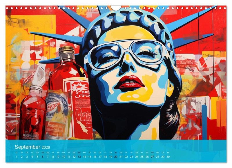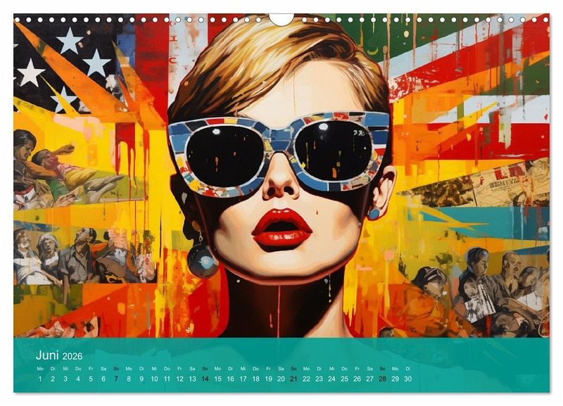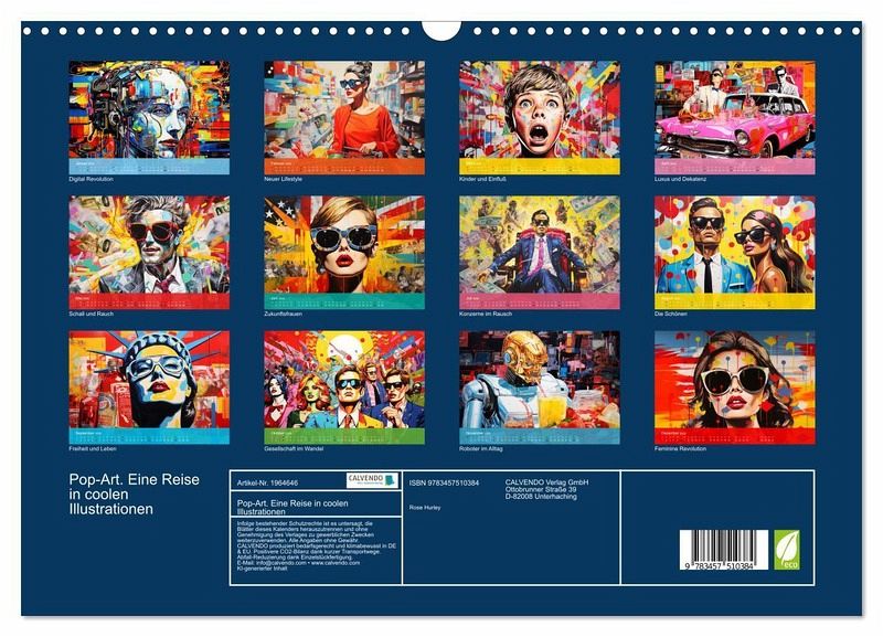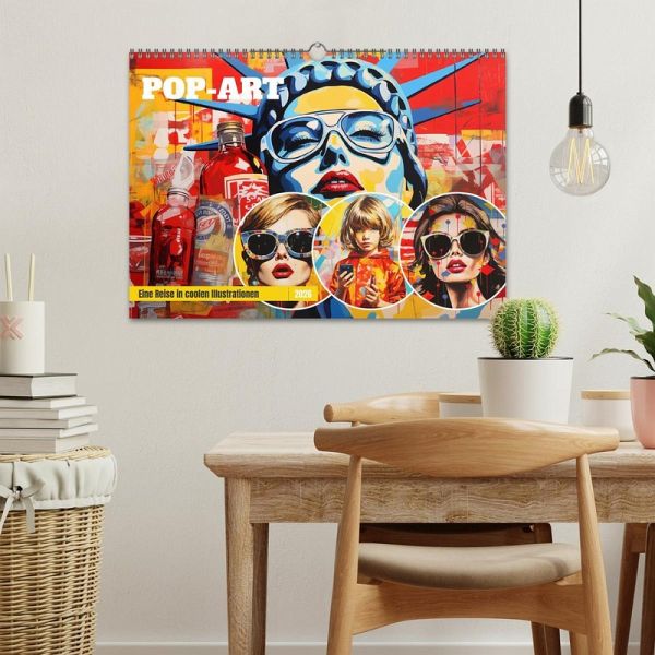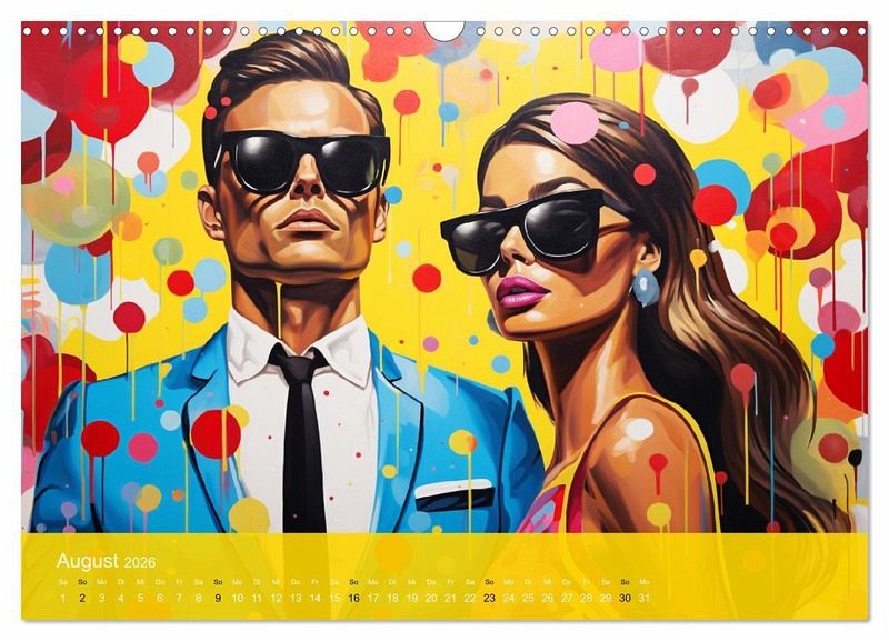 Pop-Art ist bunt und Kult. Farbenfrohe Illustrationen die zum Nachdenken anregen sind wieder voll im Trend. Jeder Monat präsentiert eine tolle Illustration, welche den ikonischen Stil und den Zeitgeist der Pop-Art Dekade einfängt. Alle Bilder wurden mit Hilfe von KI generiert und zeigen kunstvolle Kreativität, die sich als hervorragend Dekoration eignet.