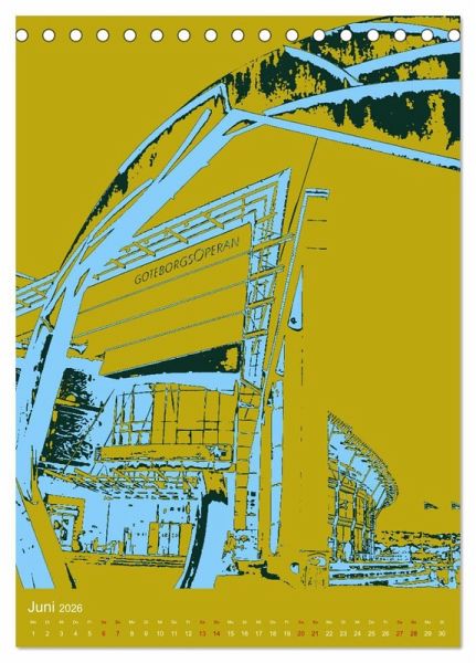 Lass dich von der schillernden Schönheit Göteborgs verzaubern. Jeder Monat präsentiert ein unverwechselbares Foto, das mit modernen, grafischen Akzenten und knalligen Farben die dynamische Seite Göteborgs zeigt - von den ikonischen Architektur-Highlights über die farbenfrohen Straßenkunstwerke bis hin zu den pulsierenden Hafenlandschaften.