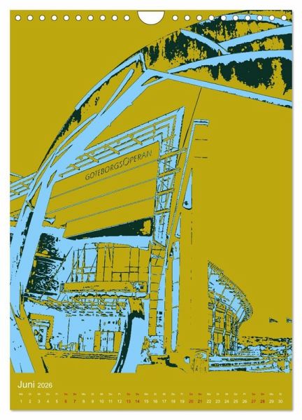 Lass dich von der schillernden Schönheit Göteborgs verzaubern. Jeder Monat präsentiert ein unverwechselbares Foto, das mit modernen, grafischen Akzenten und knalligen Farben die dynamische Seite Göteborgs zeigt - von den ikonischen Architektur-Highlights über die farbenfrohen Straßenkunstwerke bis hin zu den pulsierenden Hafenlandschaften.