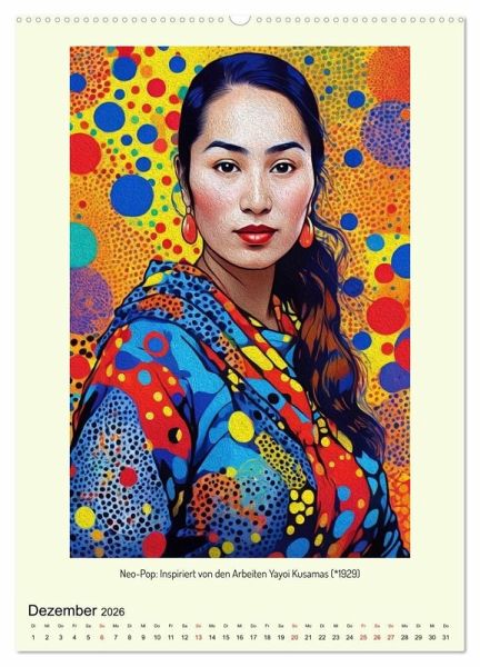 Die Popkultur, die in den 1950er-Jahren ihren Anfang nahm und künstlerisch eine Gegenbewegung zum abstrakten Expressionismus darstellt, rückt alles in den Vordergrund, was bisher als trivial gegolten hat. Andy Warhol schuf verschiedenfarbige Siebdrucke von Prominentenporträts und Roy Lichtenstein machte gigantisch vergrößerte Bilder die aussahen wie Ausschnitte aus Comic-Heften, um nur zwei Pop-Art-Künstler zu nennen. Ebenso wurden Konsumartikel wie Zahnpasta oder Dosensuppen zu knallig-bunten Kunstmotiven. Die nächste Generation, die Neo-Pop-Künstler übernahm den Ansatz der klassischen Pop-Art, ließ aber immer auch etwas Konsum- und Gesellschaftskritik mitklingen. Unser Kalender bezieht sich auf beide Spielarten. Teile davon sind mit Unterstützung von künstlicher Intelligenz entstanden.