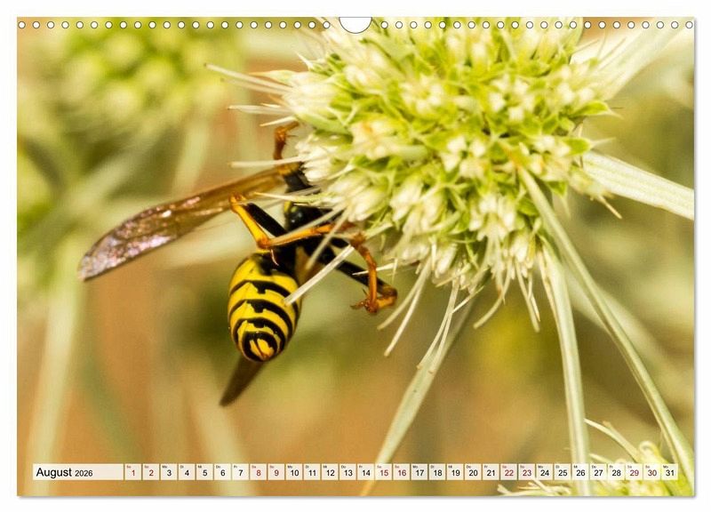 August: Stachlig! Wespe auf Feld-Mannstreu (Eryngium campestre)