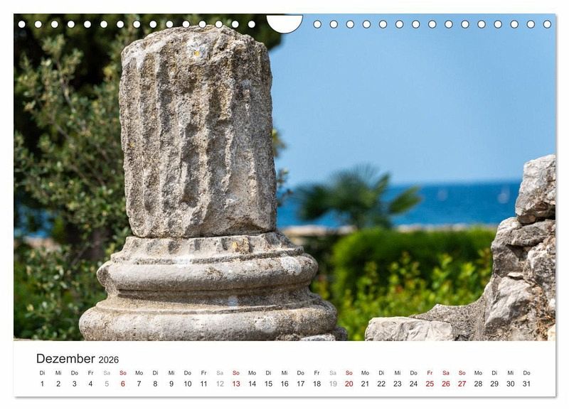 Dezember: Säulenstumpf der römischen Tempel-Ruine in Porec