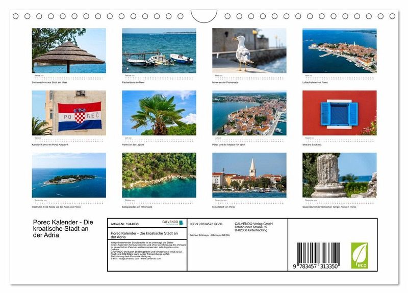 Erleben Sie die Schönheit der kroatischen Adriaküste mit dem Porec-Kalender - Die kroatische Stadt an der Adria. Dieser hochwertige Fotokalender zeigt beeindruckende Fotos der malerischen Küstenstadt Porec, aufgenommen von www.bihlmayer-media.com. Lassen Sie sich Monat für Monat von den traumhaften Landschaften, historischen Bauwerken und dem mediterranen Flair verzaubern. Perfekt für Kroatien-Liebhaber und Reisefreunde. Holen Sie sich ein Stück Kroatien-Urlaub in Bildern nach Hause!