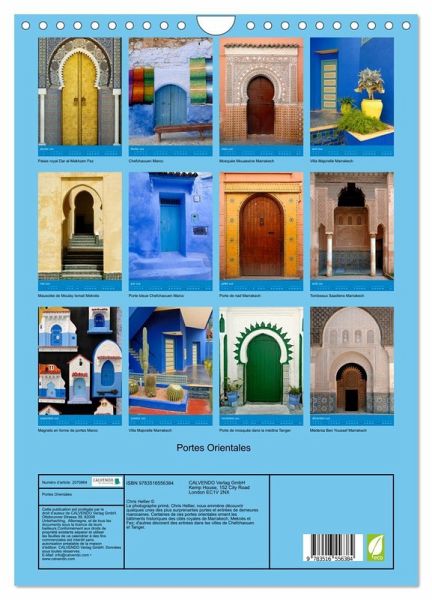 Le photographe primé, Chris Hellier, nous emmène découvrir quelques unes des plus surprenantes portes et entrées de demeures marocaines. Certaines de ces portes orientales ornent les bâtiments historiques des cités royales de Marrakech, Meknès et Fez; d'autres décorent des entrées dans les villes de Chefchaouen et Tanger.