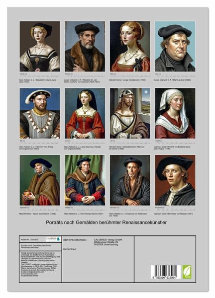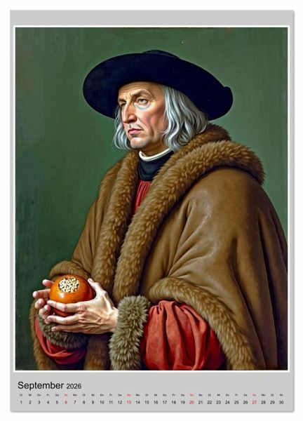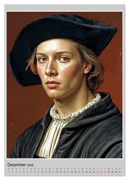 In der Geschichte der Malerei der deutschen Renaissance finden wir drei herausragende Namen: Albrecht Dürer, Lucas Cranach der Ältere und Hans Holbein der Jüngere. Jeder hat auf seine eigene Weise auch dazu beigetragen, den Menschen als Individuum darzustellen. In diesem Kalender finden wir einige ihrer Porträts, die mit KI-Unterstützung realistisch in in der Weise dargestellt sind, wie das jeweilige Modell des betroffenen Malers ausgesehen haben könnte. Unter den Modellen finden wir einfache Menschen, aber auch historisch bedeutende Persönlichkeiten, welche die Geschichte des Abendlandes entscheidend beeinflusst haben.