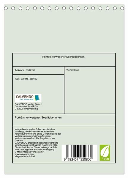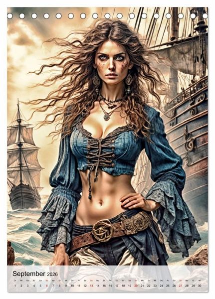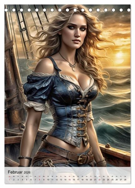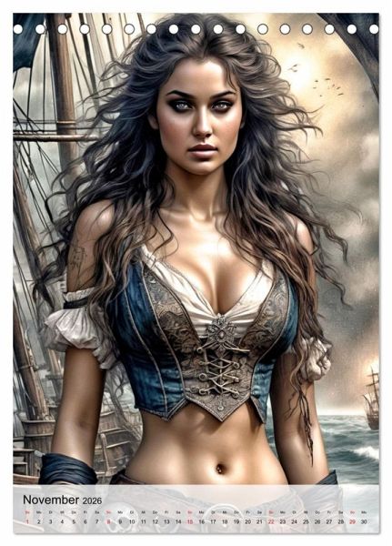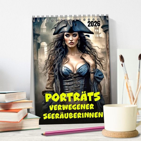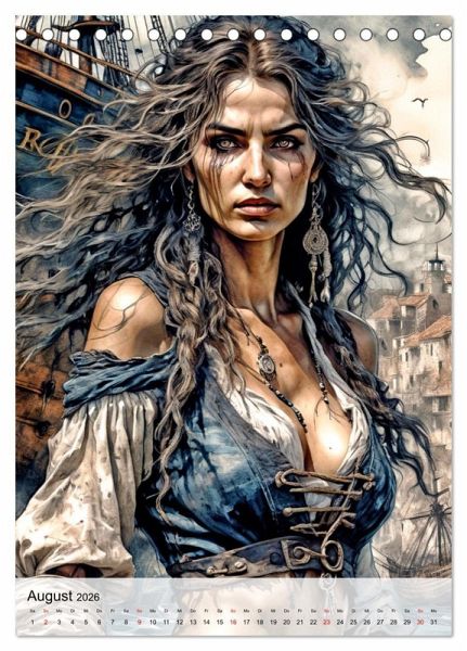 Die Schätze, die über die sieben Weltmeere transportiert werden, wollen sie nicht nur Männern überlassen. Daher sticht eine Gruppe von Freibeuterinnen in See, um in Konkurrenz zu ihren männlichen Kollegen zu treten und selbst auf hoher See das Glück, auf jeden Fall aber Gold zu finden. Zwölf dieser Piratinnen sind mit Hilfe von künstlicher Intelligenz grafisch meisterhaft ins Bild gesetzt worden. Jeden Monat finden sie eine dieser Illustrationen in diesem Kalender, der sicher ein Highlight auf Ihrer Wohnzimmerwand wird.