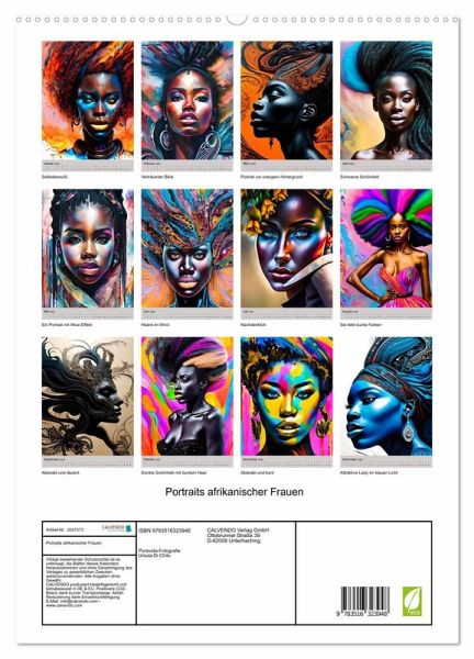 PREMIUM-LINIE - Brillanter Fotokalender mit 12 wunderschönen Motiven, Kunstdruck in Hochglanz in Museumsqualität.QUALITÄT - edle Materialien, stabile Rückwand mit 2 innovativen Einstecktaschen für eine optimale Präsentation an der Wand.NACHHALTIG - deutliche Abfallreduzierung durch bedarfsgerechte Einzelstückfertigung, umweltfreundliches FSC-zertifiziertes Papier, Produktion in Deutschland, klimabewusste Logistik.PERFEKTES GESCHENK - Kalender für Freunde und Familie, für Kinder und Erwachsene, jung und alt, zu Weihnachten, Geburtstag oder zwischendurch.Moderne abstrakte Portraits mit Afrikanerinnen von Autor(in): PuraVida