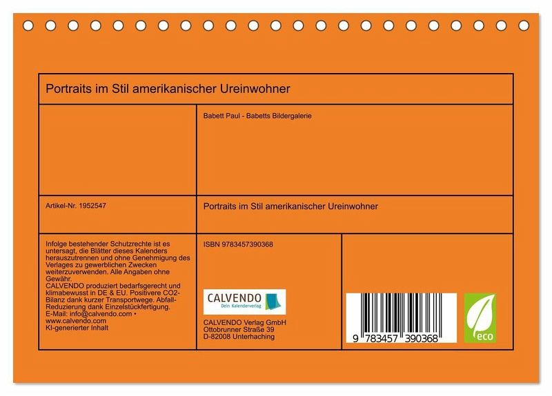 Entdecken Sie die faszinierende Welt der amerikanischen Ureinwohner mit unserem exklusiven Kalender, der 13 beeindruckende Porträts zeigt. Diese einzigartigen Bilder wurden mit modernster KI-Technologie im neoimpressionistischen Stil geschaffen und bringen die Schönheit, Stärke und Weisheit dieser Kulturen in Ihr Zuhause. Jedes Porträt erzählt eine eigene Geschichte und bringt die tiefen Traditionen und das Erbe der amerikanischen Ureinwohner auf wunderschöne Weise zum Ausdruck. Die neoimpressionistische Technik verleiht jedem Bild eine lebendige und emotionale Tiefe, die Sie das ganze Jahr über begleiten wird.