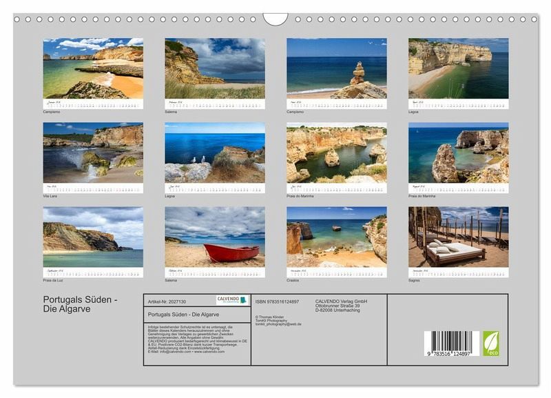 QUALITÄT - Hochwertiger Fotokalender mit 12 wunderschönen Motiven auf lichtbeständigem Bilderdruckpapier, robuste Spiralbindung mit Aufhängebügel.NACHHALTIG - deutliche Abfallreduzierung durch bedarfsgerechte Einzelstückfertigung, umweltfreundliches FSC-zertifiziertes Papier, Produktion in Deutschland, klimabewusste Logistik.PERFEKTES GESCHENK - Kalender für Freunde und Familie, für Kinder und Erwachsene, jung und alt, zu Weihnachten, Geburtstag oder zwischendurch.VIELFALT - Bildkalender in verschiedenen Formaten, z.B. DIN A5, DIN A4, DIN A3 sowie DIN A2. Ob Naturmotiv, Gemälde oder Fotos, ideal für ein persönliches Wohlfühlambiente.Portugals Süden - Die Algarve von Autor(in): TomKli