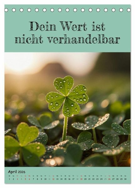 Dieser inspirierende Motivationskalender unterstützt dich dabei, Selbstvertrauen aufzubauen und positives Denken im Alltag zu stärken. Monat für Monat erwarten dich stärkende Sprüche und Zitate voller Motivation, Inspiration und Mut. Die Kombination aus beruhigenden Naturbildern und klaren Botschaften schenkt innere Stärke, Gelassenheit, Achtsamkeit und neue Lebensfreude. Perfekt für alle, die Coaching, Persönlichkeitsentwicklung und mentale Stärke lieben. Bilder mit KI generiert. Ob für dich selbst oder als Geschenk - diese positiven Impulse begleiten dich durch das Jahr, geben dir Kraft in schwierigen Momenten und erinnern dich daran, dass du einzigartig bist. Jeder Monat bringt dir eine Portion Optimismus, die dich motiviert, deinen Weg mit Klarheit und Selbstvertrauen zu gehen.