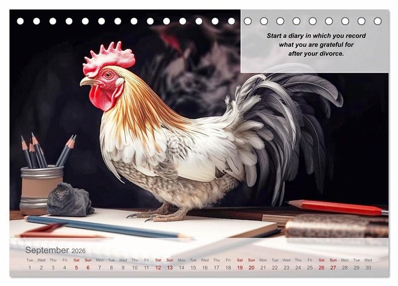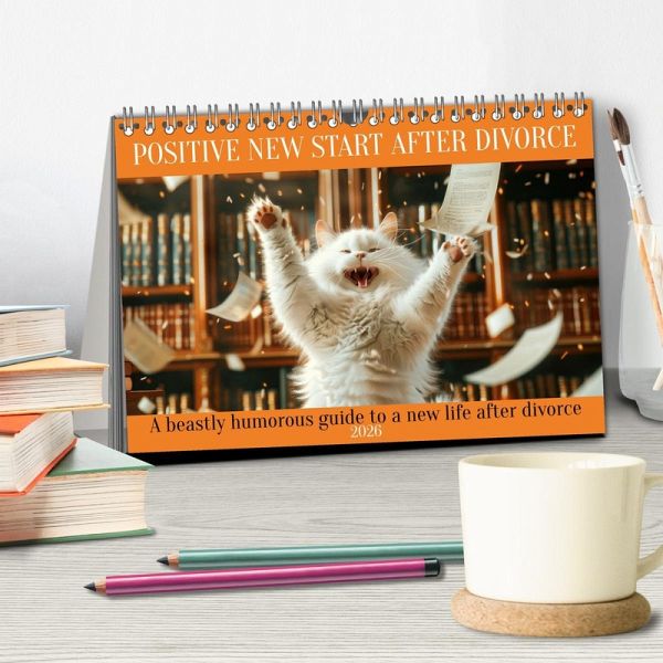 Start your new life with a smile with our Positive new start after divorce at last' annual calendar. Each month is accompanied by a charming, AI generated animal motif with humorous sayings celebrating the joys of being newly single. This calendar is your perfect companion through the first year after divorce. Be inspired, motivated and above all entertained, because life not only goes on, it also gets better. With Positive new start after divorce at last you'll find reasons to laugh month after month and look forward to the many wonderful opportunities that lie ahead. Get your calendar now and start a year full of happiness, freedom and fun.