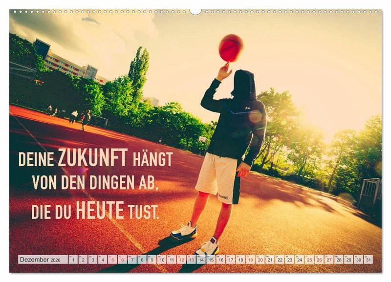 PREMIUM-LINIE - Brillanter Fotokalender mit 12 wunderschönen Motiven, Kunstdruck in Hochglanz in Museumsqualität.QUALITÄT - edle Materialien, stabile Rückwand mit 2 innovativen Einstecktaschen für eine optimale Präsentation an der Wand.NACHHALTIG - deutliche Abfallreduzierung durch bedarfsgerechte Einzelstückfertigung, umweltfreundliches FSC-zertifiziertes Papier, Produktion in Deutschland, klimabewusste Logistik.PERFEKTES GESCHENK - Kalender für Freunde und Familie, für Kinder und Erwachsene, jung und alt, zu Weihnachten, Geburtstag oder zwischendurch.Wunderschöner farbenprächtiger Kalender mit einzigartigen Motivationssprüchen nicht nur für Basketballer von Autor(in): Dirk Meutzner