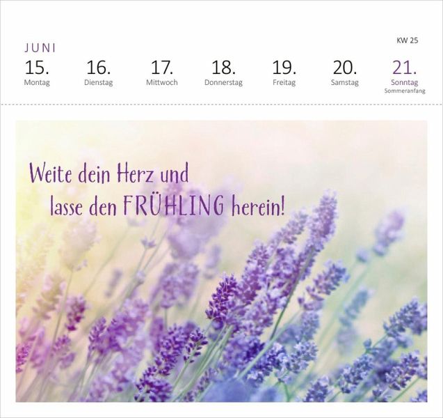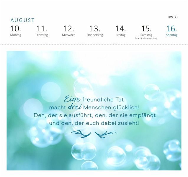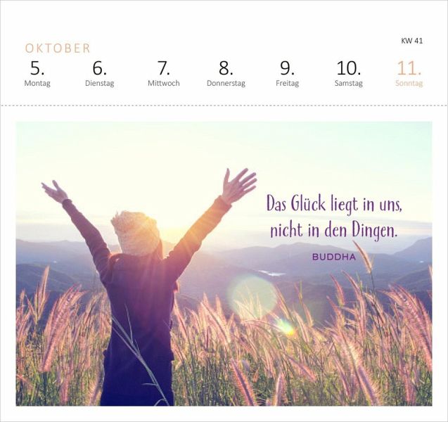 Ein tolles Geschenk für alle, die glücklicher leben möchten, Inspiration zum Glücklichsein und positive Affirmationen für ihren Alltag suchen. Der Kalender mit Postkarten ist eine Kraftquelle für die Seele - jedes Mal aufs Neue zaubert dieser Wochenkalender 2026 mit seinen schönen Sprüchen, Zitaten und Affirmationen ein Lächeln ins Gesicht. Mit dem praktischen Wochenkalendarium behält man stets den Überblick, egal ob im Büro, Homeoffice oder zu Hause. Die Postkarten mit stimmungsvollen Motiven lassen sich an der Perforation heraustrennen und können so an liebe Menschen verschickt werden.