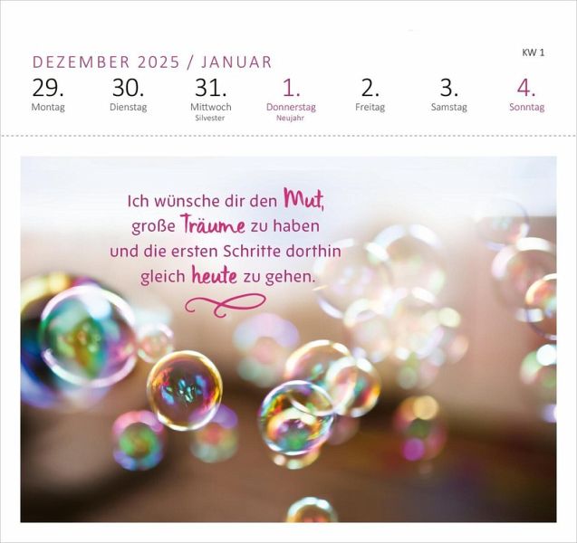 Aufstellkalender mit Herzenswünschen: Zitate und liebe Wünsche mit charmanten Fotografien auf Postkarten schenken Freude für jeden TagInspirierender Start ins Jahr 2026: Hochwertiger Tischkalender mit Spiralbindung (17,0 x 17,0 cm) und 53 heraustrennbaren PostkartenAlles auf einen Blick: Wochenkalendarium für 2025 mit Infos zu Feier- und GedenktagenSchöne Geschenkidee: Für die Freundin, Kollegin, Mama, Oma, Opa, Schwiegermutter und alle, die der Seele etwas Gutes tun möchten