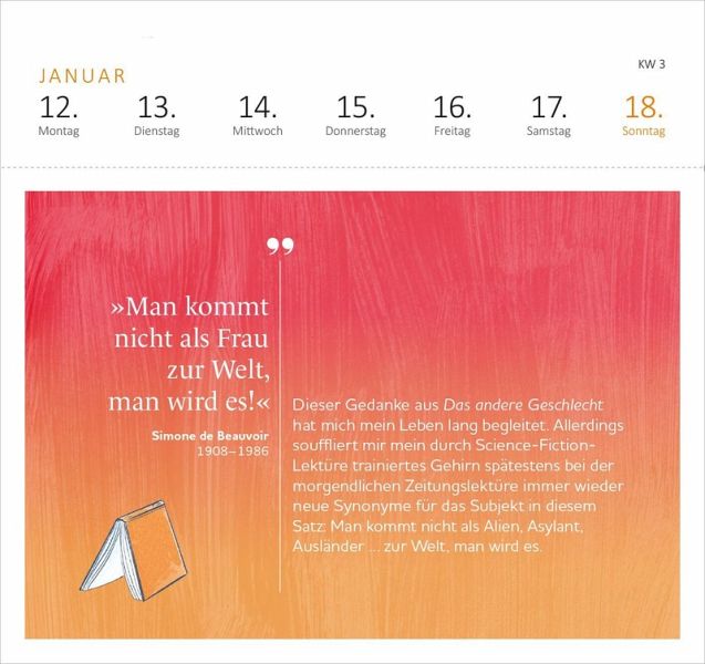 Aufstellkalender für Bücherfans: Anekdorten, Zitate und Literaturtipp, sorgfältig kuratiert von Denis ScheckSchöner Start ins Jahr 2026: Schöner Tischkalender mit Spiralbindung (17,0 x 17,0 cm) mit 53 heraustrennbaren PostkartenAlles auf einen Blick: Wochenkalendarium für 2026 mit Infos zu Feier- und GedenktagenTolles Geschenk: Der ideale Kalender für alle, die Bücher lieben und sich jeden Tag literarisch inspirieren lassen möchten