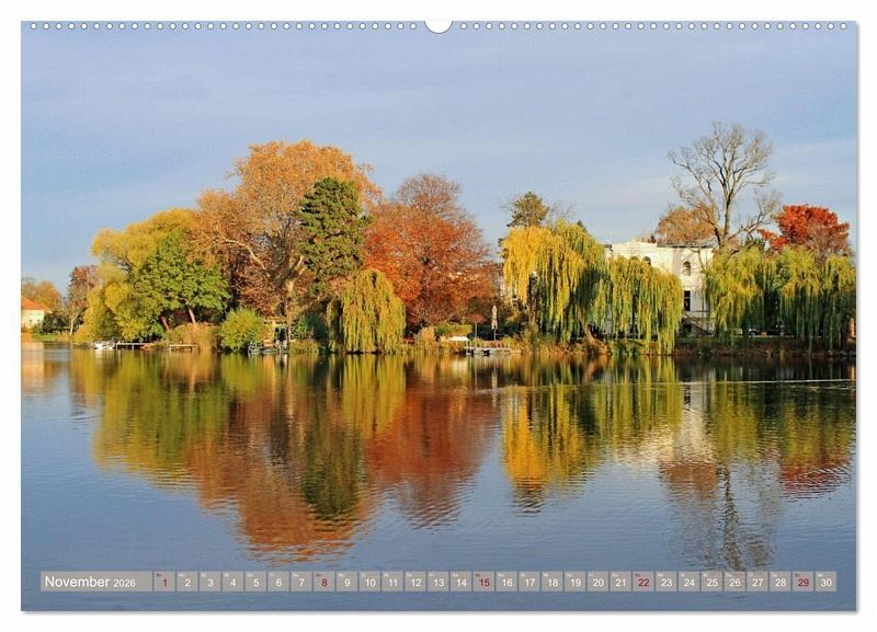 November: Traumhafte Herbstfarben im Spiegel des Heiligen Sees. Durch seine malerische Lage genießt der See als Ausflugsziel besondere Wertschätzung.