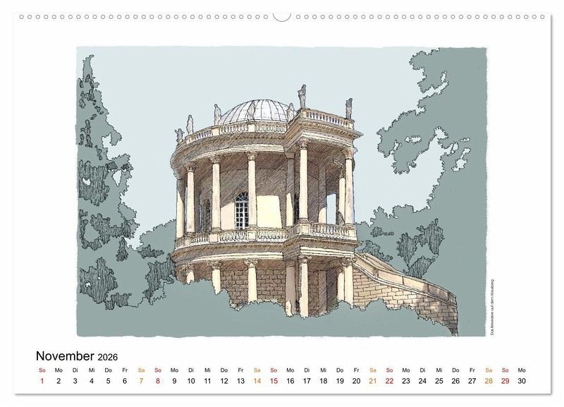12 handgefertigte Illustrationen in Tinte und anschließend digital coloriert von Potsdamer Sehenswürdigkeiten für Kulturliebhaber, Architekturbegeisterte und Potsdamfreunde.
