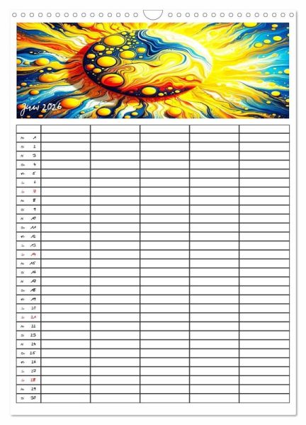 Entdecken Sie den "Pouring Art Familienplaner", inspiriert vom neuesten Trend aus den USA, wo diese Kunstform voll im Trend liegt. Jedes Bild, erschaffen durch fortschrittliche KI-Technologie, spiegelt die lebendige Dynamik der Pouring-Technik wider und bringt einen Hauch amerikanischer Kreativkultur in Ihren Alltag. Von den kühlen Blautönen des Winters bis zu den warmen Herbstfarben - erleben Sie die Jahreszeiten in faszinierenden Farbverläufen. Dieser Planer ist nicht nur ein praktisches Organisationswerkzeug für die Familie, sondern auch ein täglicher Inspirationsquelle, der die Brücke…mehr