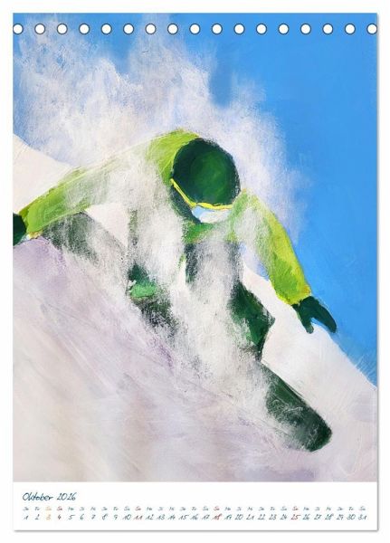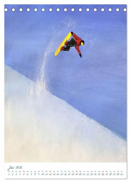 Dieser Kalender ist für Dich, der den Powder liebt und das Gefühl, wenn Du die ersten Spuren in den frischen Schnee ziehst. "Powder Passion - Snowboard-Art" bringt Deine Leidenschaft für Snowboarden in kunstvoll gemalten Bildern an die Wand. Jeder Monat entführt Dich in eine andere, atemberaubende Winterlandschaft und zeigt den Thrill und die Freiheit, die Du auf Deinem Brett erlebst.