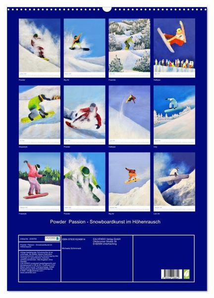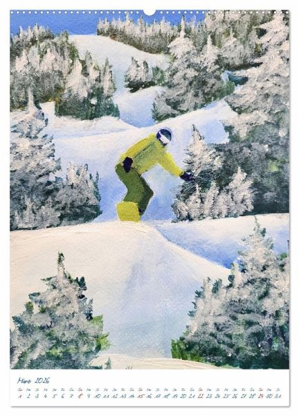 Dieser Kalender ist für Dich, der den Powder liebt und das Gefühl, wenn Du die ersten Spuren in den frischen Schnee ziehst. "Powder Passion - Snowboard-Art" bringt Deine Leidenschaft für Snowboarden in kunstvoll gemalten Bildern an die Wand. Jeder Monat entführt Dich in eine andere, atemberaubende Winterlandschaft und zeigt den Thrill und die Freiheit, die Du auf Deinem Brett erlebst.