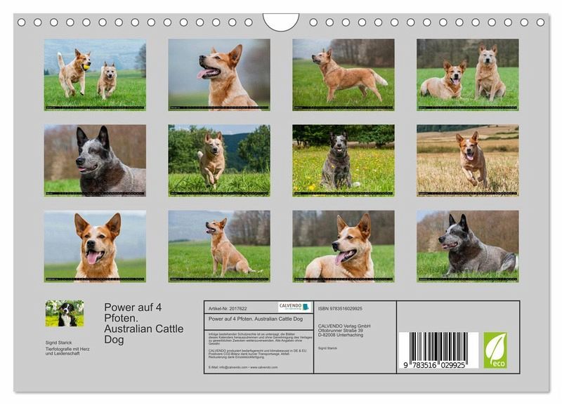 QUALITÄT - Hochwertiger Fotokalender mit 12 wunderschönen Motiven auf lichtbeständigem Bilderdruckpapier, robuste Spiralbindung mit Aufhängebügel.NACHHALTIG - deutliche Abfallreduzierung durch bedarfsgerechte Einzelstückfertigung, umweltfreundliches FSC-zertifiziertes Papier, Produktion in Deutschland, klimabewusste Logistik.PERFEKTES GESCHENK - Kalender für Freunde und Familie, für Kinder und Erwachsene, jung und alt, zu Weihnachten, Geburtstag oder zwischendurch.VIELFALT - Bildkalender in verschiedenen Formaten, z.B. DIN A5, DIN A4, DIN A3 sowie DIN A2. Ob Naturmotiv, Gemälde oder Fotos, ideal für ein persönliches Wohlfühlambiente.Australian Cattle Dogs auf 13 wunderschönen Fotos von Autor(in): SiSta-Tierfoto