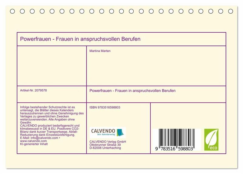 QUALITÄT - Hochwertiger Fotokalender mit 12 wunderschönen Motiven auf lichtbeständigem Bilderdruckpapier, robuste Spiralbindung.NACHHALTIG - deutliche Abfallreduzierung durch bedarfsgerechte Einzelstückfertigung, umweltfreundliches FSC-zertifiziertes Papier, Produktion in Deutschland, klimabewusste Logistik.PERFEKTES GESCHENK - Kalender für Freunde und Familie, für Kinder und Erwachsene, jung und alt, zu Weihnachten, Geburtstag oder zwischendurch.VIELFALT - Bildkalender in verschiedenen Formaten, z.B. DIN A5, DIN A4, DIN A3 sowie DIN A2. Ob Naturmotiv, Gemälde oder Fotos, ideal für ein persönliches Wohlfühlambiente.Feiern Sie die Stärke und Entschlssenheit vonFrauen im Beruf. von Autor(in): Martina Marten