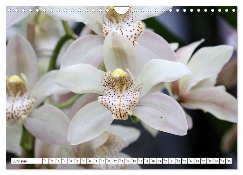 Orchideen blühen in sehr vielen strahlenden Farben wie in etwa rot, gelb, grün, orange, rosa oder lila. Bei einzelnen Arten können an den seitlichen Blütenblättern punktförmige kontrastreiche Zeichnungen oder aderförmige Linien auftreten.