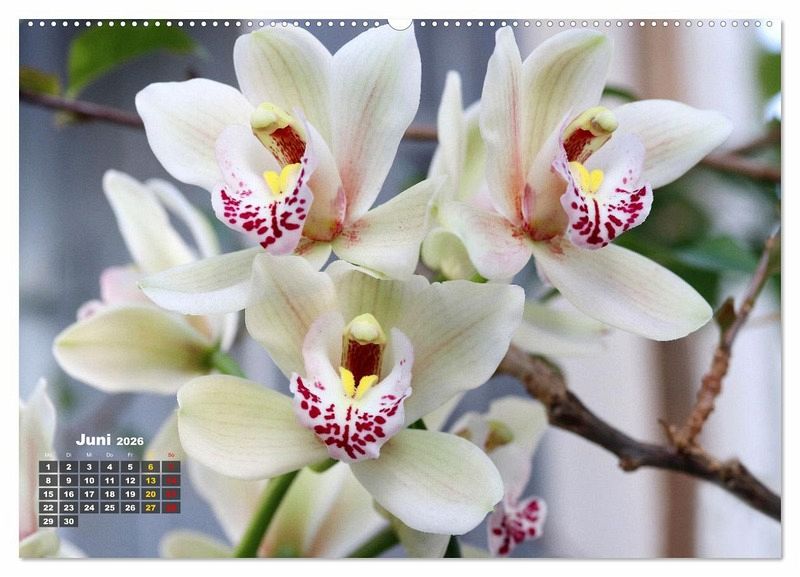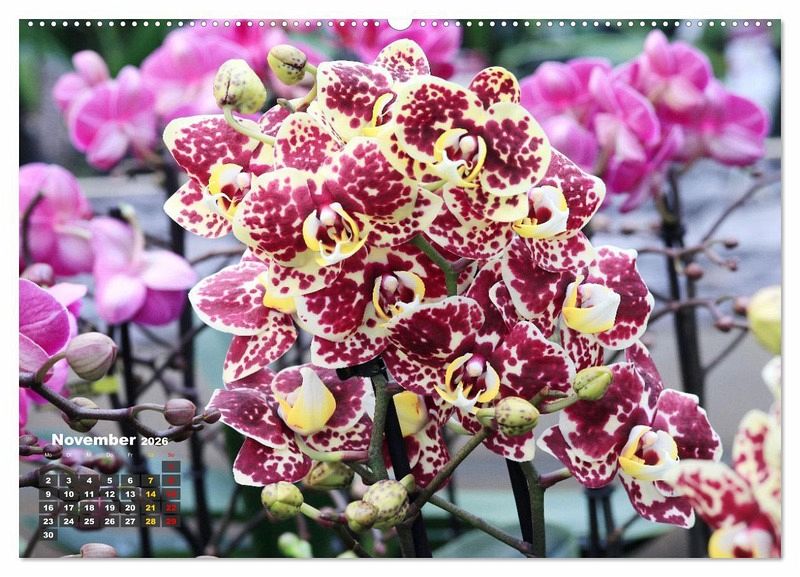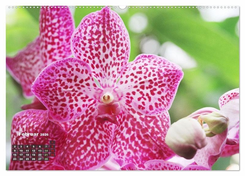 Zarte, exotische Blüten mit einer unglaublichen Vielfalt an Formen, Mustern und Farben versammeln sich in diesem wunderbaren Kalender. Bewundern Sie die beliebte Schmetterlingsorchidee (Phalaenopsis), Frauenschuhorchideen (Paphiopedilum), Cattleya, Vanda und Kahnorchidee (Cymbidium).