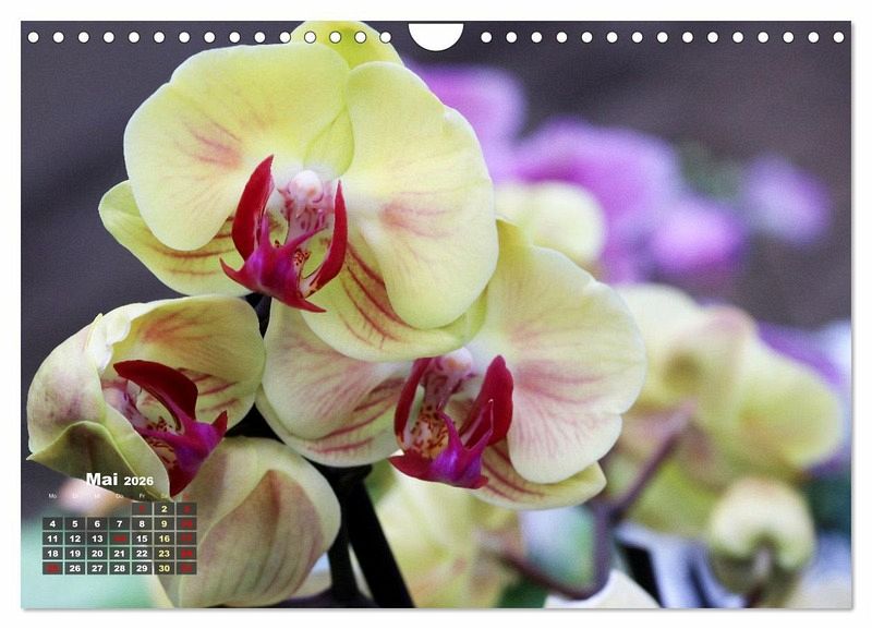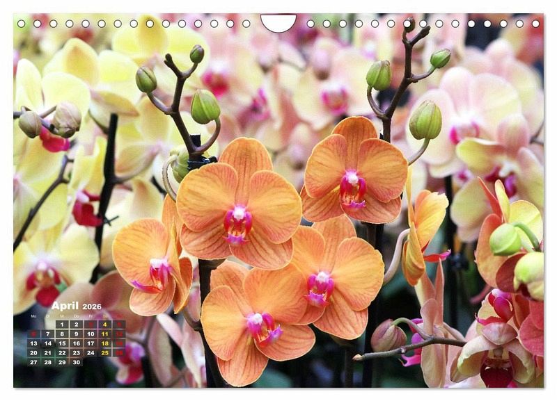 Zarte, exotische Blüten mit einer unglaublichen Vielfalt an Formen, Mustern und Farben versammeln sich in diesem wunderbaren Kalender. Bewundern Sie die beliebte Schmetterlingsorchidee (Phalaenopsis), Frauenschuhorchideen (Paphiopedilum), Cattleya, Vanda und Kahnorchidee (Cymbidium).