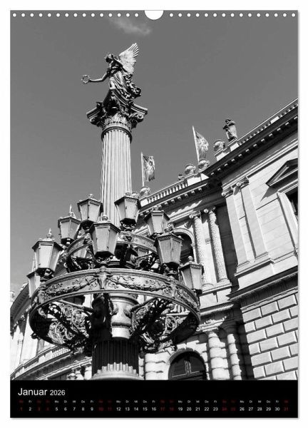 Januar: Detailreiche Laterne mit Statue am Rudolfinum