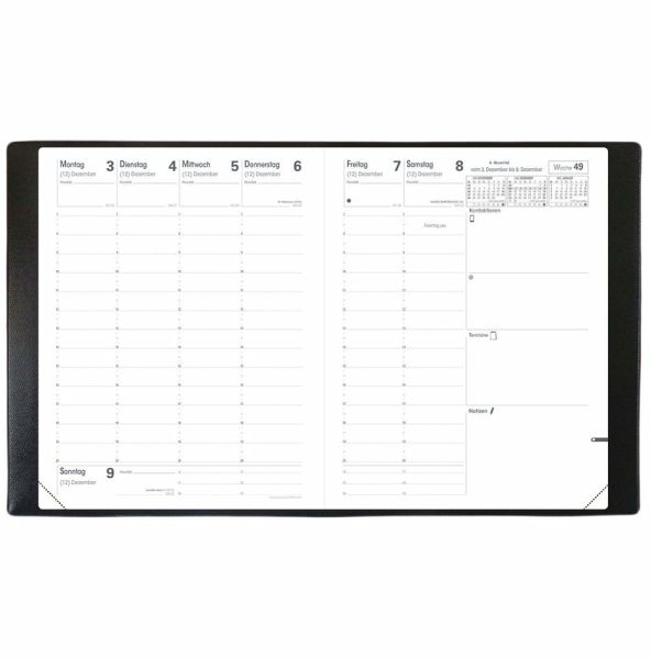 Quo Vadis - Terminkalender - 2026 - Pre 777 - Die Woche Planning - Deutsch - Impala - Schwarz - Dez/Dez - 21x27 cm - Clairefontaine-Papier Weiß - Hergestellt in Frankreich Wochenkalender mit einer doppelseitigen Übersicht Wochenübersicht - die ganze Woche auf einen Blick Enthält auf jeder Doppelseite einen freien Bereich zum Notieren wichtiger Informationen (zu kontaktierende Personen, zu erledigende Dinge usw.) Papier Clairefontaine, weiß, für ein glattes und flüssiges Schreibgefühl, perforierte abreißbare Ecken für eine einfache Orientierung Abnehmbarer Deckel und nachfüllbarer Inhalt für eine lange Verwendung Aufbewahrungstaschen für kleine Dokumente und ein herausnehmbares Verzeichnis für Ihre Kontakte