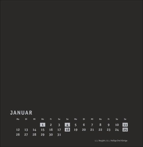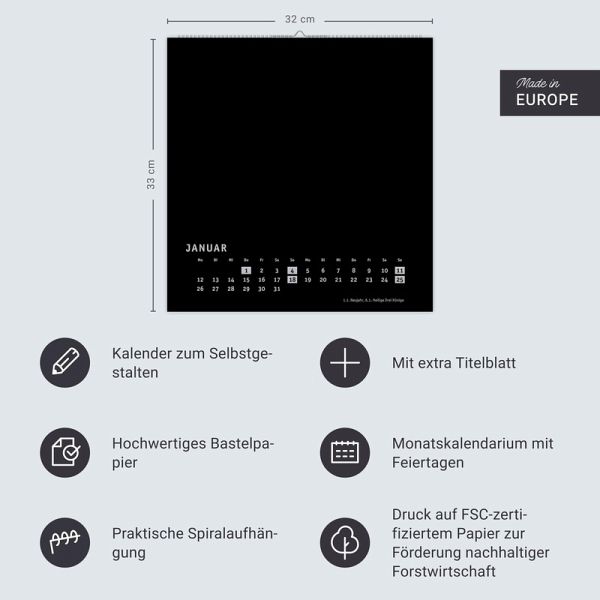 - Der große Foto- und Bastelkalender 2026: Freude bereiten mit einem DIY-Kalender - eine tolle Geschenkidee für Weihnachten oder zum Geburtstag! - Kalender im quadratischen Format mit schwarzer Grundfarbe als neutralem Hintergrund- Bastel-Kalender mit Platz für alles, was Sie glücklich macht: Zeigen Sie das Kalender-Thema oder das Jahresmotto auf dem extra Titelblatt - Inspirierende Sprüche, selbstgemalte Kunstwerke oder die Lieblingsfotos aus dem Urlaub kommen auf den Kalenderblättern aus hochwertigem Karton besonders gut zur Geltung- Kalender, so einzigartig wie Sie selbst: Die Blanko-Kalender von Heye im Athesia Kalenderverlag gibt es in vielen Farben und Größen