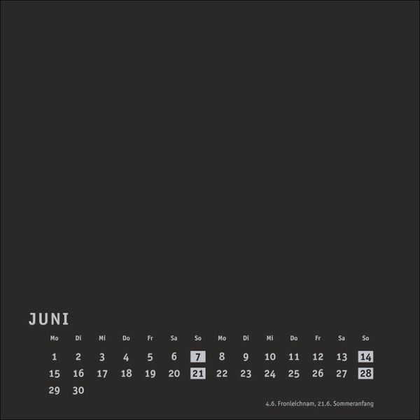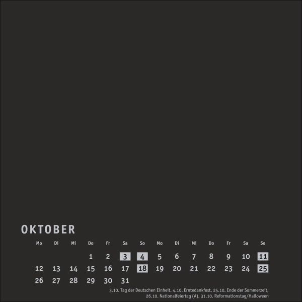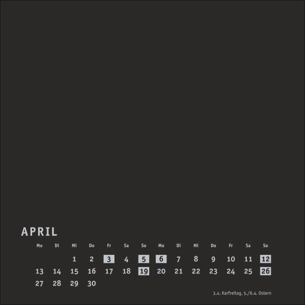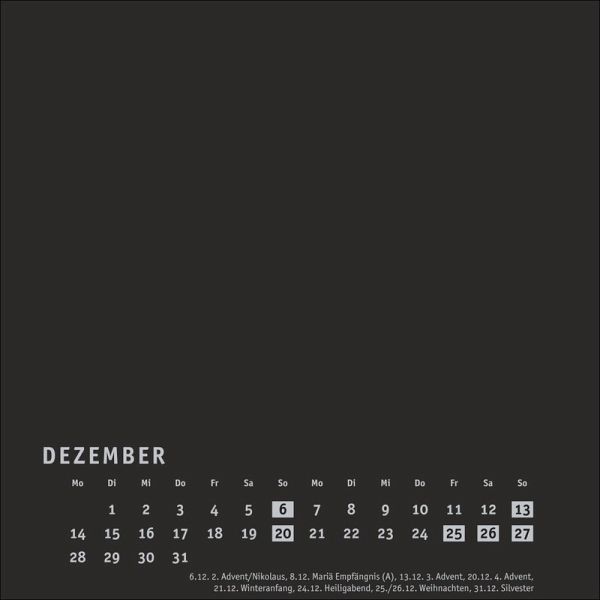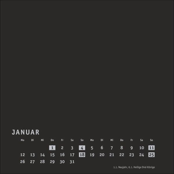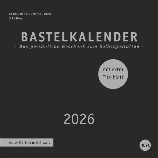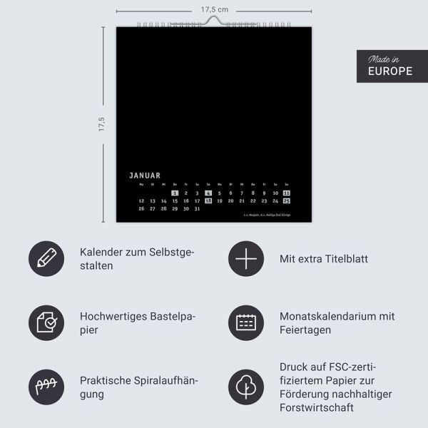 - Viel Raum für kreative Ideen: unsere DIY-Wandkalender zum Selbstgestalten- Malen, fotografieren, basteln ... Lassen Sie Ihrer Inspiration freien Lauf und entwerfen Sie ein individuelles Kunstwerk voller unvergesslicher Erinnerungen!- Neutraler Monatskalender (Format 17,5 x 17,5 cm) in edlem Schwarz und auf hochwertigem Karton- Als persönlicher Fotokalender oder als Bastelkalender mit kleinen Meisterwerken der Kinder: ein tolles Geschenk für Freunde und Familie- Kalender selbst gestalten, in allen gängigen Farben und Formaten: die Blanko-Kalender von Heye im Athesia Kalenderverlag