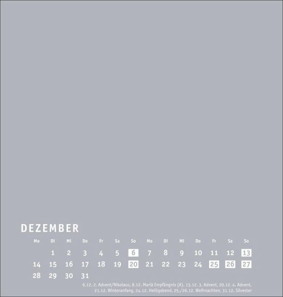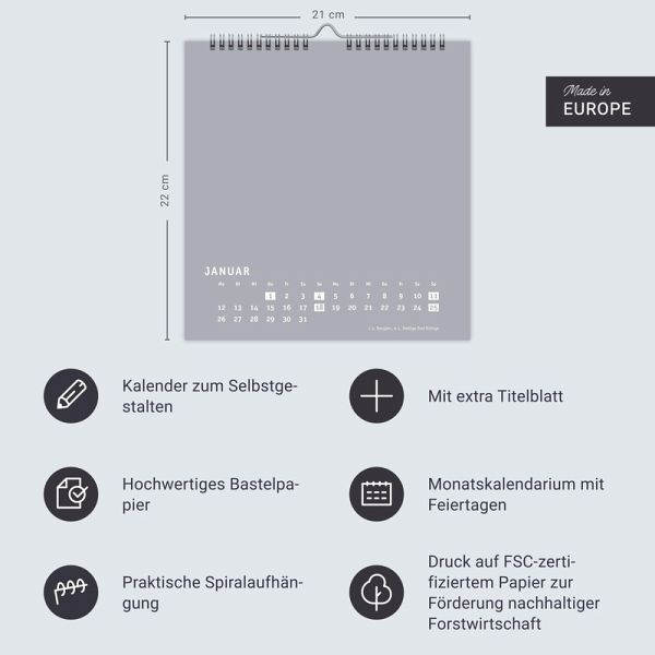 - Viel Raum für kreative Ideen: unsere DIY-Wandkalender zum Selbstgestalten- Malen, fotografieren, basteln ... Lassen Sie Ihrer Inspiration freien Lauf und entwerfen Sie ein individuelles Kunstwerk voller unvergesslicher Erinnerungen!- Neutraler Monatskalender (21 x 22 cm) in edlem Silbergrau und auf hochwertigem Karton- Als persönlicher Fotokalender oder als Bastelkalender mit kleinen Meisterwerken der Kinder: ein tolles Geschenk für Freunde und Familie- Kalender selbst gestalten, in allen gängigen Farben und Formaten: die DIY-Kalender von Heye im Athesia Kalenderverlag