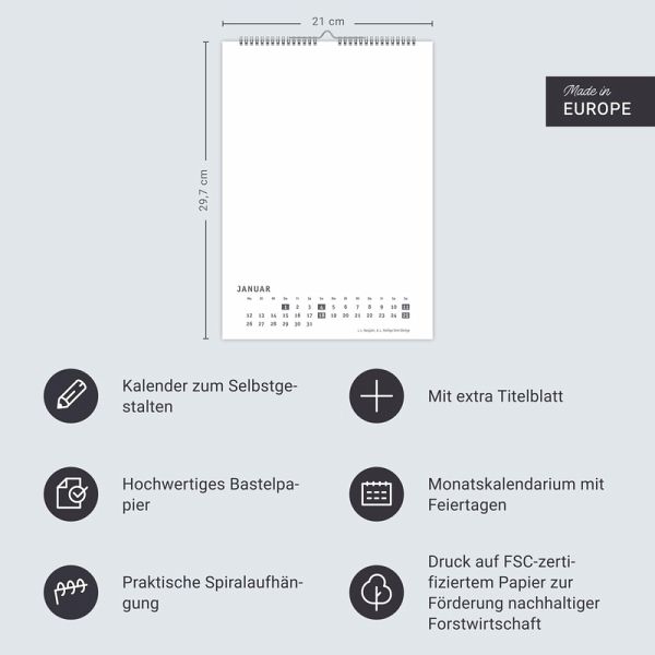 - Weiß wie eine leere Leinwand: Dieser Blanko-Kalender wartet nur darauf, dass Sie Ihrer Kreativität freien Lauf lassen- Die schönsten Momente der letzten Urlaube, inspirierende Sprüche, kleine Kunstwerke: Verleihen Sie dem Foto- und Bastelkalender 2026 Ihre ganz persönliche Note - Quadratisches Format, stabile Kalenderblätter und weiße Grundfarbe als neutraler Hintergrund - Bastel-Kalender mit Platz für alles, was Sie glücklich macht: Zeigen Sie das Kalender-Thema oder das Jahresmotto auf dem extra Titelblatt - Kalender, so einzigartig wie Sie selbst: Die Blanko-Kalender von Heye im Athesia Kalenderverlag gibt es in vielen Farben und Größen