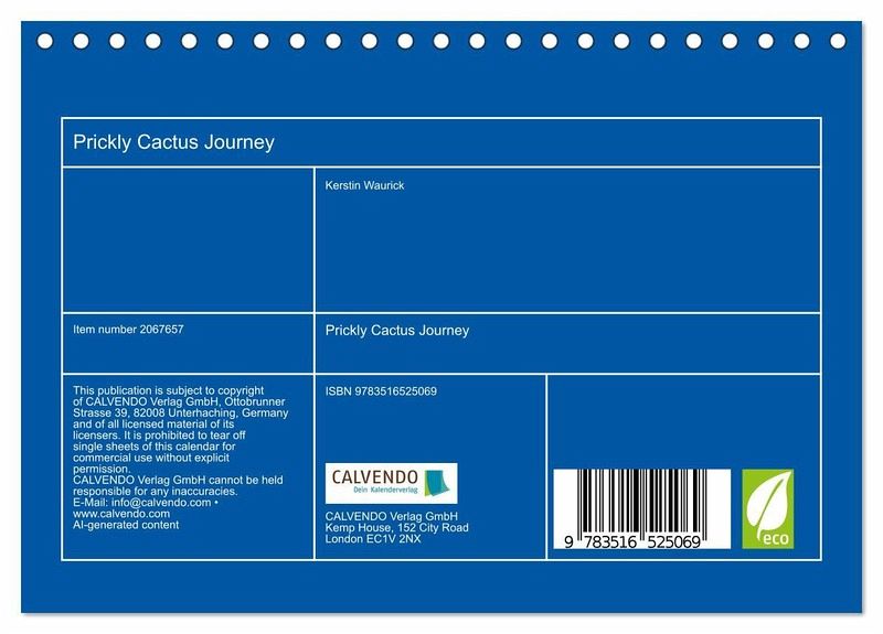 QUALITY - High-quality photo calendar with 12 beautiful images on light-resistant paper, robust spiral binding.SUSTAINABLE - Significant waste reduction due to print-on-demand production, environmentally friendly FSC-certified paper, produced locally, climate-conscious logistical processes.PERFECT GIFT - calendars for friends and family, for children, all ages and all occasions, from Christmas to birthdays and everything in between.LOTS OF CHOICE - Wall calendars in different sizes (DIN A4 and DIN A3), for any topic and personal taste, featuring photography, painting and illustrations.Flowering spines - An annual journey through cacti von Autor(in): Kerstin Waurick