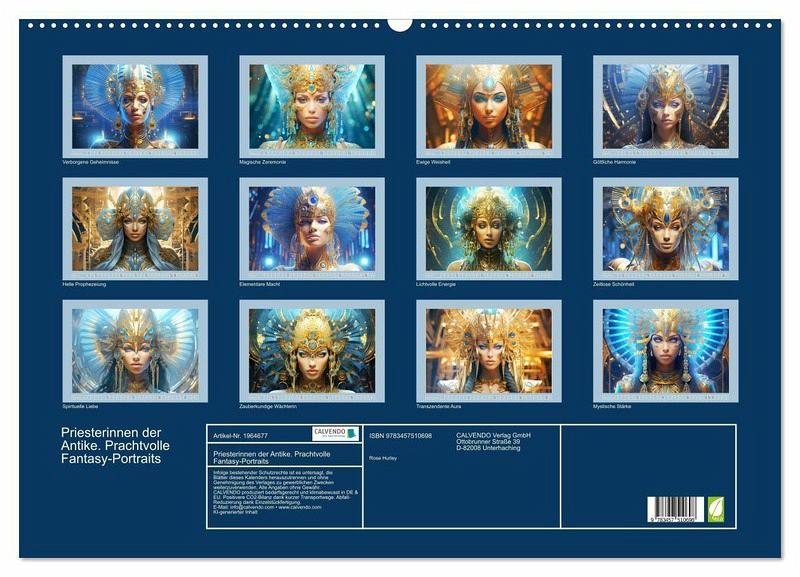 Entdecken Sie die faszinierende Symbiose aus Vergangenheit und Gegenwart mit diesen tollen Bildern. Tauchen Sie ein in die Welt antiker Priesterinnen, die in modernen Fantasy-Illustrationen zum Leben erweckt wurden. Jeder Monat enthüllt eine Schönheit voller mysteriöser Stärke und verborgener Geheimnisse. Diese kunstvollen Illustrationen wurden mit Hilfe modernster KI-Technologie generiert, um Ihnen ein visuelles Erlebnis von höchster Qualität zu bieten. Erleben Sie die magische Zeremonie, die ewige Weisheit und die göttliche Harmonie, die diese antiken Priesterinnen verkörpern. Dieser Kalender ist perfekt für alle Fantasy-Liebhaber. Lassen Sie sich von der zeitlosen Schönheit und der spirituellen Kraft antiker Priesterinnen verzaubern.