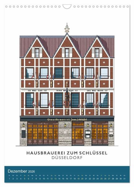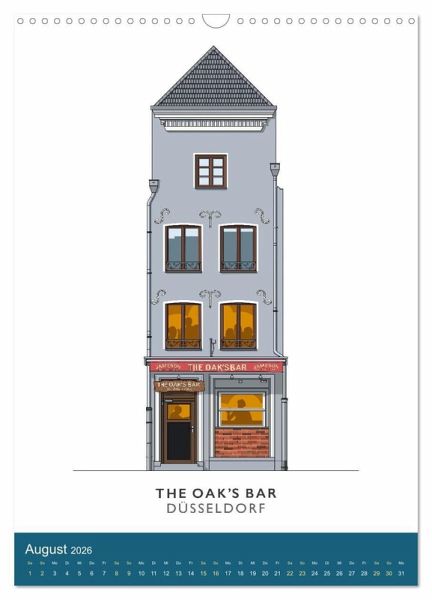 Die längste Theke der Welt. Ein Superlativ, mit dem die Düsseldorfer Altstadt sich seit vielen Jahren zu Recht schmücken darf. 260 Bars, Kneipen und Brauereien gibt es im historischen Kern der Stadt. Die Schönheit der Architektur wird von den Besucher aber nur selten gewürdigt. Die faszinierenden u d detailreichen Illustrationen in diesem einzigartigen Kalender vermitteln einen Blick auf die Bauwerke "hinter" den Bars. Jeder Monat entführt Sie in ein neues Lokal dieser pulsierenden Gegend. Die kunstvollen Illustrationen fangen die besondere Architektur, die bunten Facetten und die gesellige Stimmung jedes Ortes perfekt ein. Ob als Erinnerung an vergnügliche Abende oder als Inspiration für zukünftige Entdeckungen - unser Kalender holt das einzigartige Flair der Düsseldorfer Altstadt direkt zu Ihnen nach Hause. Lassen Sie sich Monat für Monat von der einladenden Welt der Bars und Kneipen verzaubern und genießen Sie das ganze Jahr über einen Hauch rheinischer Gemütlichkeit!