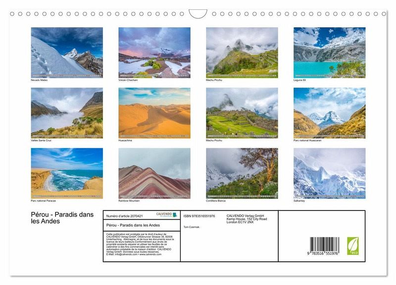 Le Pérou se caractérise par ses montagnes. Les Andes, avec leurs spectaculaires montagnes enneigées, percourent la totalité du pays. En opposition à ce climat principalement froid, des températures chaudes prédominent sur côte Pacifique.