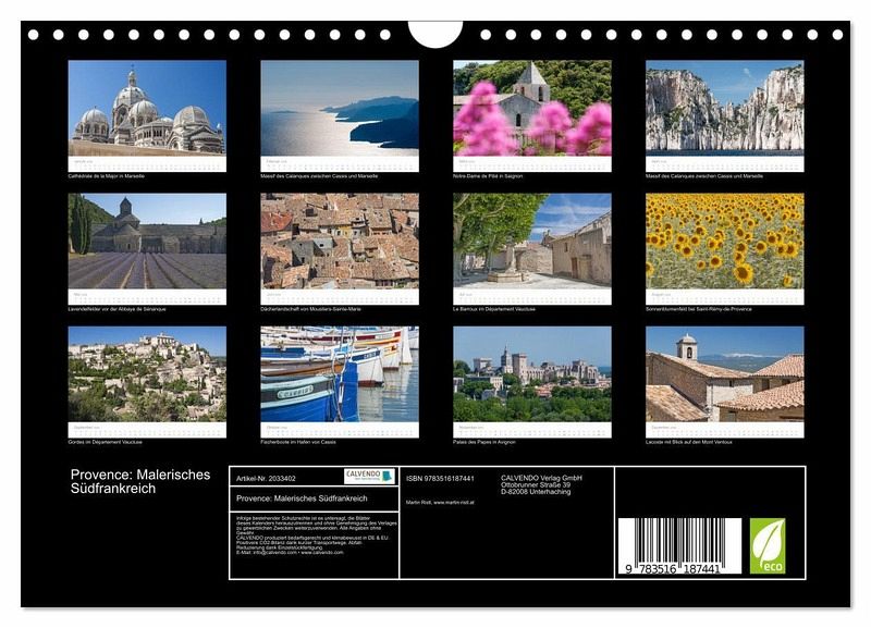 QUALITÄT - Hochwertiger Fotokalender mit 12 wunderschönen Motiven auf lichtbeständigem Bilderdruckpapier, robuste Spiralbindung mit Aufhängebügel.NACHHALTIG - deutliche Abfallreduzierung durch bedarfsgerechte Einzelstückfertigung, umweltfreundliches FSC-zertifiziertes Papier, Produktion in Deutschland, klimabewusste Logistik.PERFEKTES GESCHENK - Kalender für Freunde und Familie, für Kinder und Erwachsene, jung und alt, zu Weihnachten, Geburtstag oder zwischendurch.VIELFALT - Bildkalender in verschiedenen Formaten, z.B. DIN A5, DIN A4, DIN A3 sowie DIN A2. Ob Naturmotiv, Gemälde oder Fotos, ideal für ein persönliches Wohlfühlambiente.Eine Fotoreise durch die Dörfer, Städte und Landschaften der Provence. von Autor(in): Martin Ristl