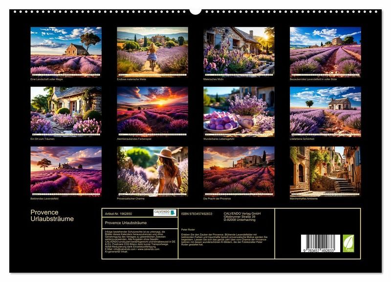 PREMIUM-LINIE - Brillanter Fotokalender mit 12 wunderschönen Motiven, Kunstdruck in Hochglanz in Museumsqualität.QUALITÄT - edle Materialien, stabile Rückwand mit 2 innovativen Einstecktaschen für eine optimale Präsentation an der Wand.NACHHALTIG - deutliche Abfallreduzierung durch bedarfsgerechte Einzelstückfertigung, umweltfreundliches FSC-zertifiziertes Papier, Produktion in Deutschland, klimabewusste Logistik.PERFEKTES GESCHENK - Kalender für Freundeund Familie, für Kinder und Erwachsene, jung und alt, zu Weihnachten, Geburtstag oder zwischendurch.Zauber und Charme der Provence. von Autor(in): Peter Roder