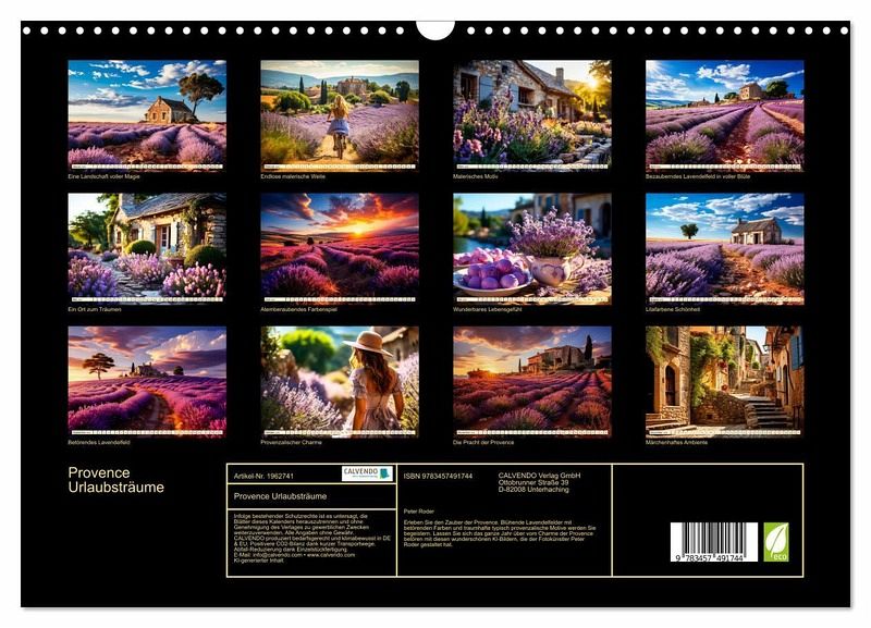 Erleben Sie den Zauber der Provence. Blühende Lavendelfelder mit betörenden Farben und traumhafte typisch provenzalische Motive werden Sie begeistern. Lassen Sie sich das ganze Jahr über vom Charme der Provence betören mit diesen wunderschönen KI-Bildern, die der Fotokünstler Peter Roder gestaltet hat.