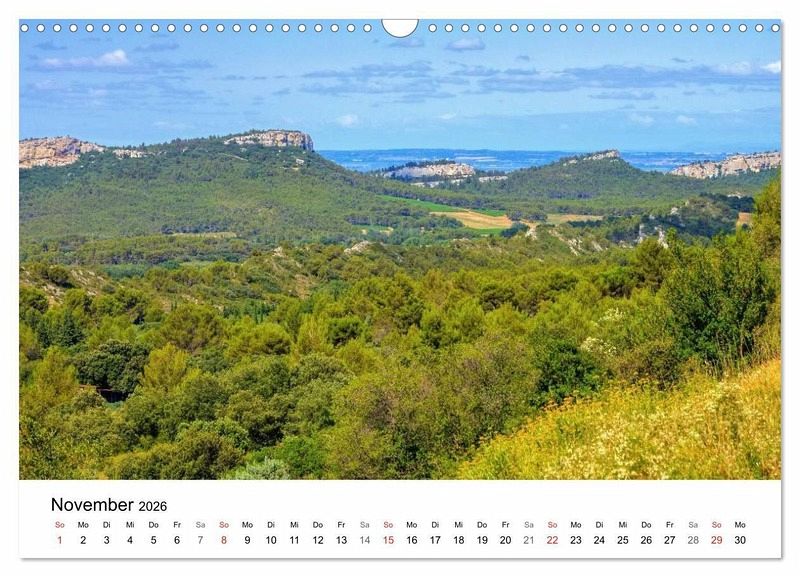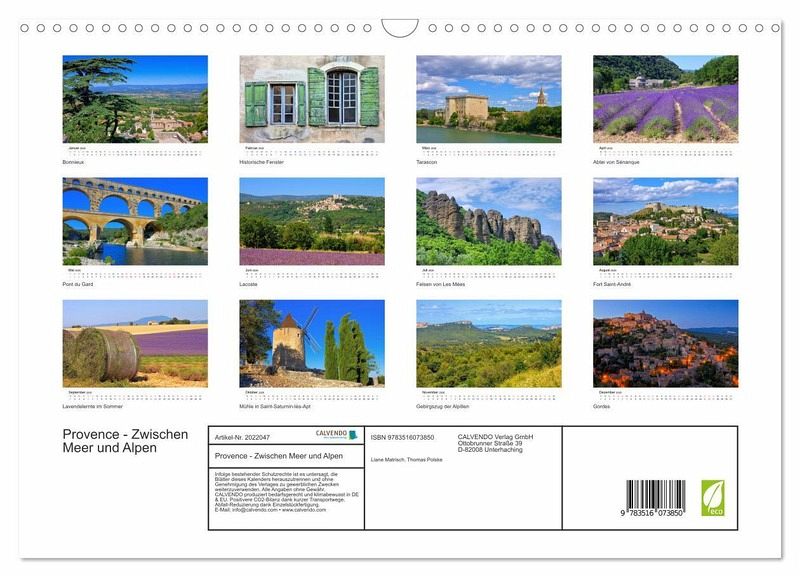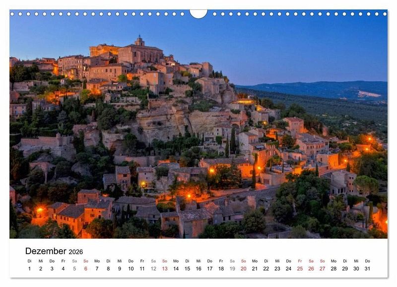 Dieser Kalender begleitet Sie mit abwechslungsreichen Fotos durch die Dörfer, Städte und Landschaften der Provence.
