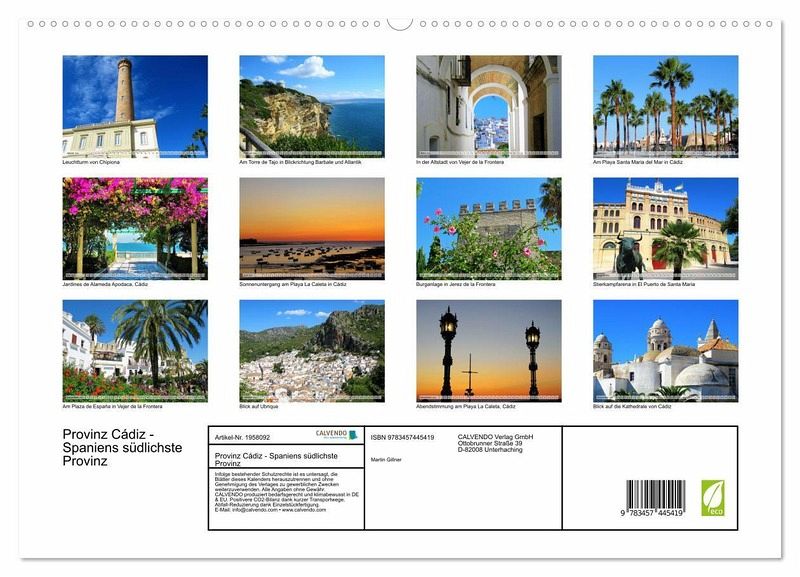 PREMIUM-LINIE - Brillanter Fotokalender mit 12 wunderschönen Motiven, Kunstdruck in Hochglanz in Museumsqualität.QUALITÄT - edle Materialien, stabile Rückwand mit2 innovativen Einstecktaschen für eine optimale Präsentation an der Wand.NACHHALTIG - deutliche Abfallreduzierung durch bedarfsgerechte Einzelstückfertigung, umweltfreundliches FSC-zertifiziertes Papier, Produktion in Deutschland, klimabewusste Logistik.PERFEKTES GESCHENK - Kalender für Freunde und Familie, für Kinder und Erwachsene, jung und alt, zu Weihnachten, Geburtstag oder zwischendurch.Die vielseitige andalusische Provinz Cádiz fasziniert mit Küsten, Stränden, Geschichte und den vielen weißen Dörfern. von Autor(in): Martin Gillner