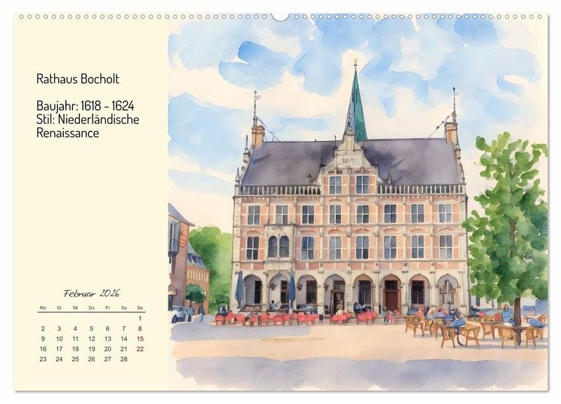 Historische prunkvolle Rathäuser spiegeln die politische und gesellschaftliche Bedeutung von Städten im Mittelalter und der Frühmoderne wider. Als Zentren kommunaler Selbstverwaltung und Repräsentation wurden sie oft zu imposanten Gebäuden, die Macht, Wohlstand und kulturelles Selbstbewusstsein sichtbar machen. Noch heute werden diese prunkvollen Gebäuder vielerorts als Rathäuser genutzt. Heute stehen viele Rathäuser als Zeugnisse für städtischer Geschichte, Kunsthandwerkskunst und architektonische Innovation. Einige der schönsten Häuser wurden von Fotos mithilfe moderner Bildbearbeitung im Aquarell-Stil dargestellt, die die nostalgischen Fassaden besonders herausstellen.