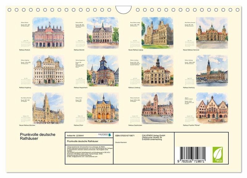 QUALITÄT - Hochwertiger Fotokalender mit 12 wunderschönen Motiven auf lichtbeständigem Bilderdruckpapier, robuste Spiralbindung mit Aufhängebügel.NACHHALTIG - deutliche Abfallreduzierung durch bedarfsgerechte Einzelstückfertigung, umweltfreundliches FSC-zertifiziertes Papier, Produktion in Deutschland, klimabewusste Logistik.PERFEKTES GESCHENK - Kalender für Freunde und Familie, für Kinder und Erwachsene, jung und alt, zu Weihnachten, Geburtstag oder zwischendurch.VIELFALT - Bildkalender in verschiedenen Formaten, z.B. DIN A5, DIN A4, DIN A3 sowie DIN A2. Ob Naturmotiv, Gemälde oder Fotos, ideal für ein persönliches Wohlfühlambiente.Historische Gebäude in zartem Aquarell-Stil von Autor(in): Claudia Kleemann