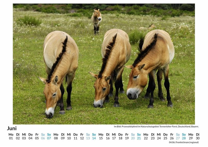 Entdecken Sie die faszinierende Welt der Przewalski-Pferde mit unserem exklusiven Monats-Wandkalender! Jedes der 12 sorgfältig ausgewählten Motive zeigt die majestätischen Wildpferde in ihrer natürlichen Umgebung - ein Muss für Natur- und Tierliebhaber. Gedruckt auf hochwertigem, lichtbeständigem Bilderdruckpapier, bringt dieser Kalender die Schönheit der Natur direkt in Ihr Zuhause. Nachhaltigkeit liegt uns am Herzen: Unsere Kalender werden in Deutschland auf FSC-zertifiziertem Papier produziert. Holen Sie sich ein Stück Wildnis an Ihre Wand und genießen Sie Monat für Monat atemberaubende Aufnahmen dieser seltenen Pferdeart! Perfekt auch als Geschenk! Hochwertig Erleben Sie ein Jahr voller Eleganz mit unserem Premium-Fotokalender. Jedes der 12 Motive ist auf hochwertigem, lichtbeständigem Bilderdruckpapier gedruckt, um die Lebendigkeit jedes Bildes zu bewahren. Die robuste Spiralbindung gewährleistet Langlebigkeit und einfache Handhabung. Nachhaltig Unser Engagement für die Umwelt spiegelt sich in jedem Exemplar wider. Durch die Produktion auf Abruf reduzieren wir signifikant unseren Abfall. Wir verwenden ausschließlich umweltfreundliches, FSC-zertifiziertes Papier. Stolz gefertigt in Deutschland, achten wir bei unserer Logistik auf Klimaschutz, um unseren ökologischen Fußabdruck zu minimieren. Das ideale Geschenk Dieser Kalender ist das perfekte Präsent für jeden Anlass - ob Weihnachten, Geburtstage oder einfach als liebevolle Aufmerksamkeit zwischendurch. Geeignet für Freunde, Familie, Kinder und Erwachsene gleichermaßen, bereichert er jedes Zuhause mit seiner Vielfalt und Schönheit, unabhängig vom Alter der Beschenkten.