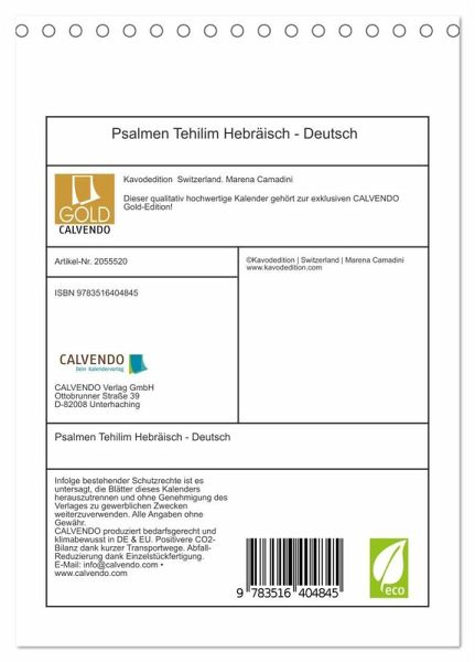 QUALITÄT - Hochwertiger Fotokalender mit 12 wunderschönen Motiven auf lichtbeständigem Bilderdruckpapier, robuste Spiralbindung.NACHHALTIG - deutliche Abfallreduzierung durch bedarfsgerechte Einzelstückfertigung, umweltfreundliches FSC-zertifiziertes Papier, Produktion in Deutschland, klimabewusste Logistik.PERFEKTES GESCHENK - Kalender für Freunde und Familie, für Kinder und Erwachsene, jung und alt, zu Weihnachten, Geburtstag oder zwischendurch.VIELFALT - Bildkalender in verschiedenen Formaten, z.B. DIN A5, DIN A4, DIN A3 sowie DIN A2. Ob Naturmotiv, Gemälde oder Fotos, ideal für ein persönliches Wohlfühlambiente.Mit den Psalmen durchs Jahr von Autor(in): Kavodedition